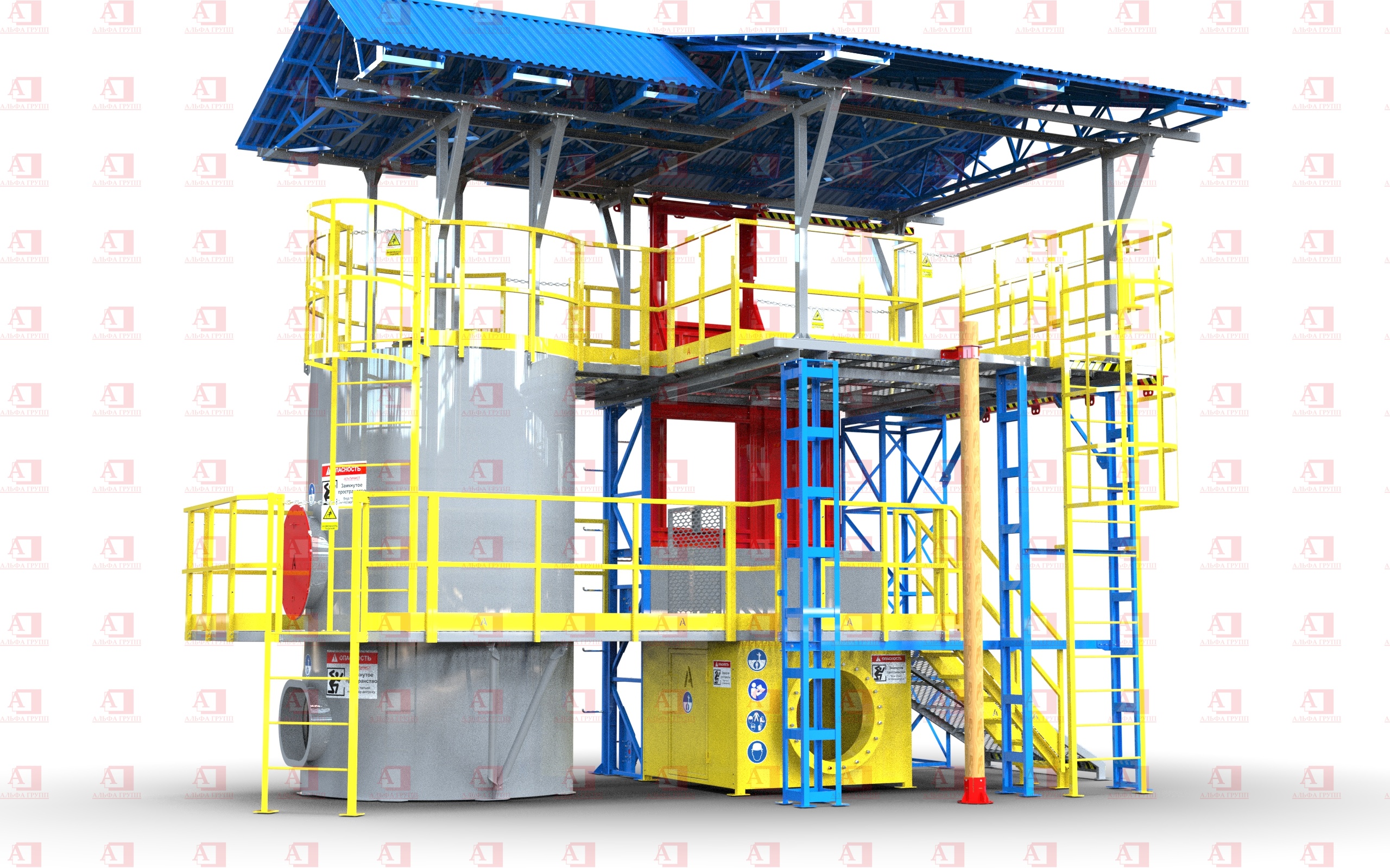 Доступ на рабочую площадку второго уровня осуществляется по стальной маршевой лестнице.